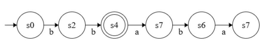 However, it does not accept “bbaba” because we land on the non-accepting state s7 after reading the word: